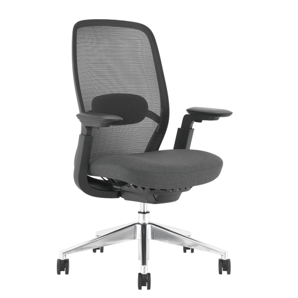 Регулируемата лумбална опора подпомага правилната стойка, 4D подлакътниците ( регулиране на височината, ъгъла, разстоянието и падовете напред-назад) осигуряват персонално напасване, а алуминиевата звезда гарантира стабилност и издръжливост.